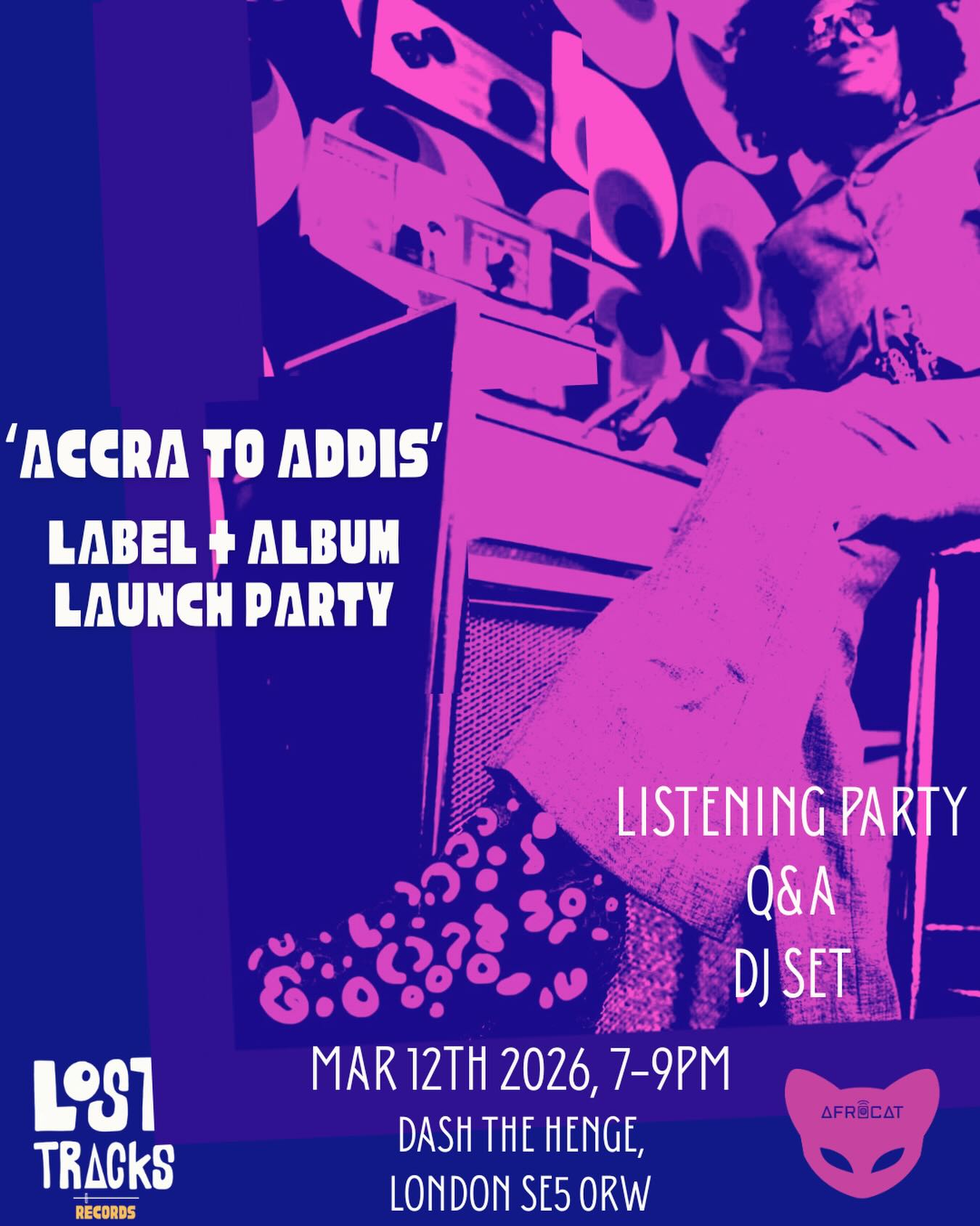 THIS IS TONIGHT #TONIGHT 7-9pm at @dashthehengestore 348 Camberwell Road. Near Camberwell Green, London SE5 0BW as @afrocatmusic music launches her @losttracksrecords label and the 1st compilation “Accra to Addis” with an album #listeningparty, a #qanda led by Debbie Golt @outerglobe and a #ᴅᴊsᴇᴛ